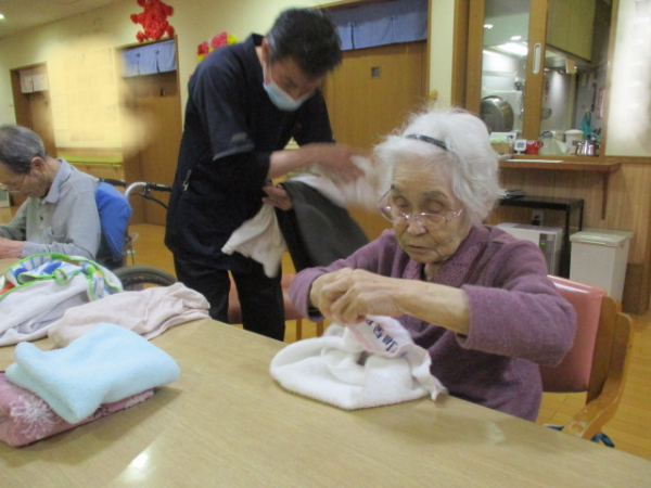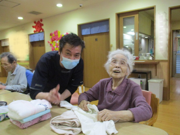 しかし、ここGH上瀬谷のご利用者様は手分けしてたたんでくれるんです\(-o-)/パチパチ(^_-)-☆