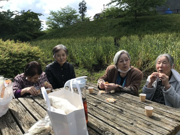 みなさんで鯉のぼりを見ながらおやつタイム(*^-^*)