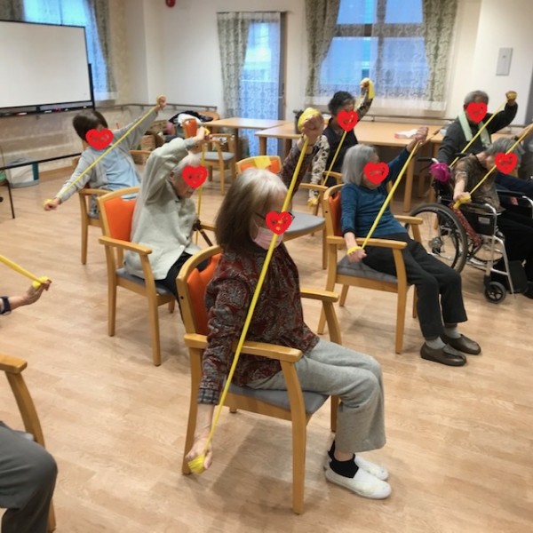 アミカの郷成増でも、セラバンドを使った運動を1年ほど前から継続的に行っています。