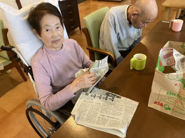ご利用者様には新聞が配られ・・それを丸めて何かを作っております