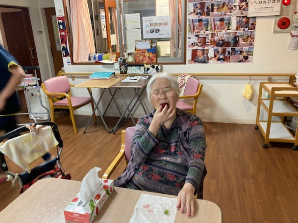 夕食後、皆さん嬉しそうに一口で召し上がっていました。