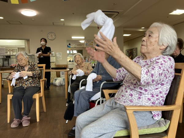 前回同様、亜佐美先生が来設され、タオル体操の指導をして下さいました♪