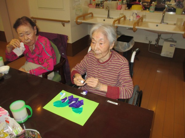 本日レクリエーション「折り紙工作・あじさい」をアップさせて頂きます。 (((o(*゚▽゚*)o)))