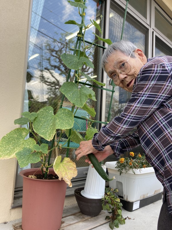 収穫したキュウリを三杯酢で和え、さっそく試食会♡