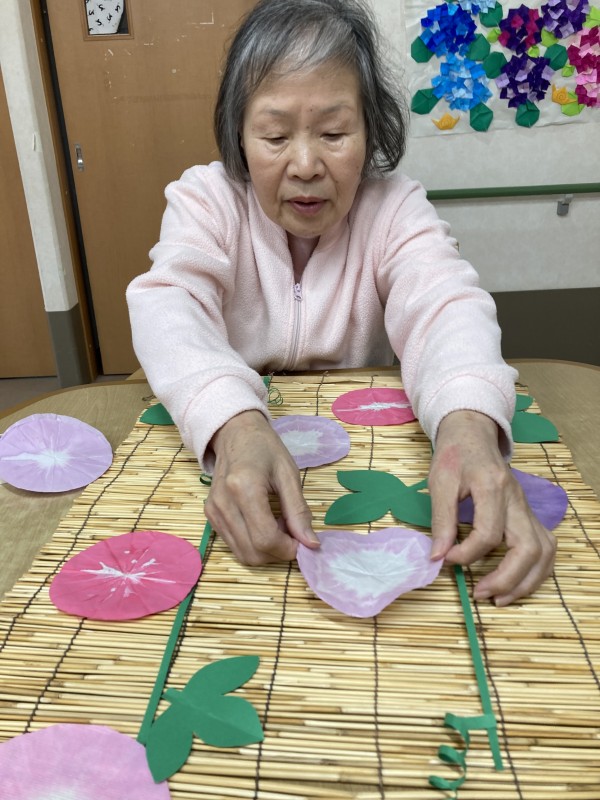 今日は朝顔の壁面飾りを作って頂きました。