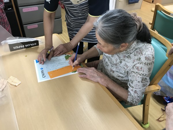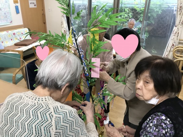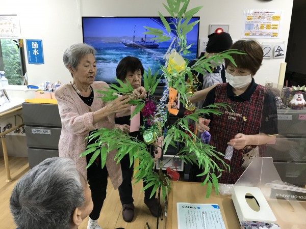 レクリエーションでご利用者様と職員で七夕の短冊へ「お願い事」をしました。