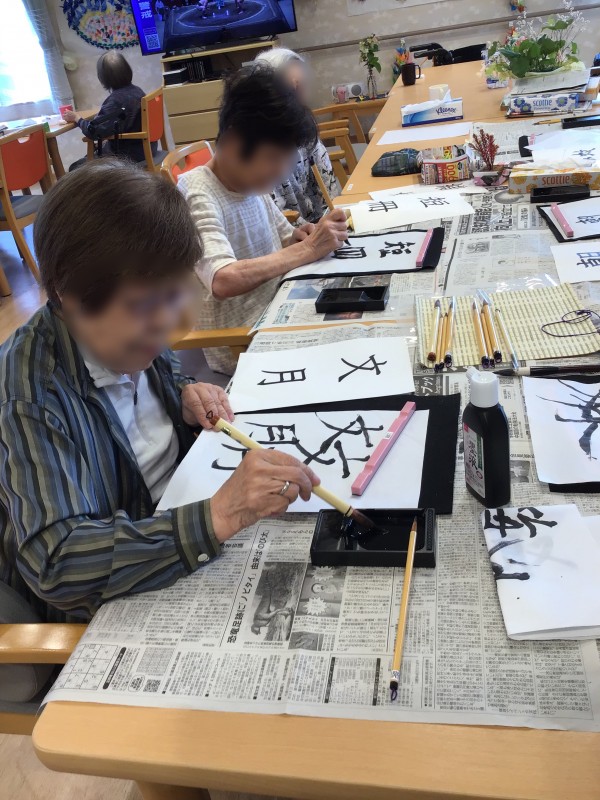 先日やりました、書道の会の様子です♪( ´▽`)