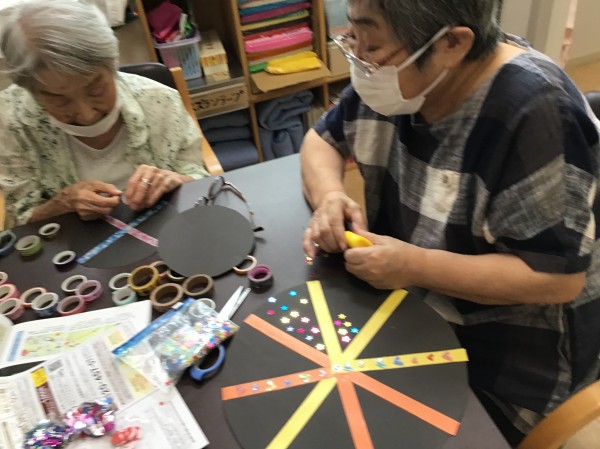 黒い画用紙にマスキングテープを選んで色とりどりに貼ってくださいました。