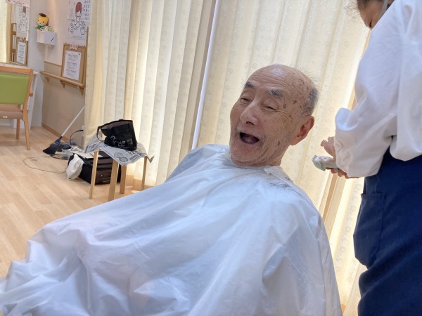 今月訪問理美容があり、みなさん髪を綺麗さっぱりにしてもらい