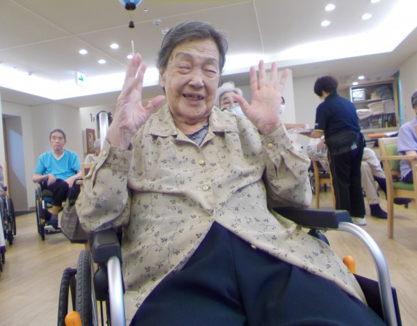 参加したスタッフは、お客様の間に入り体操の促しをしています。