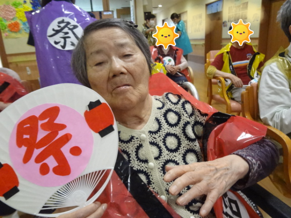 スタッフ・ご利用者様全員で着用(#^.^#)盆踊りって感じですね\(-o-)/
