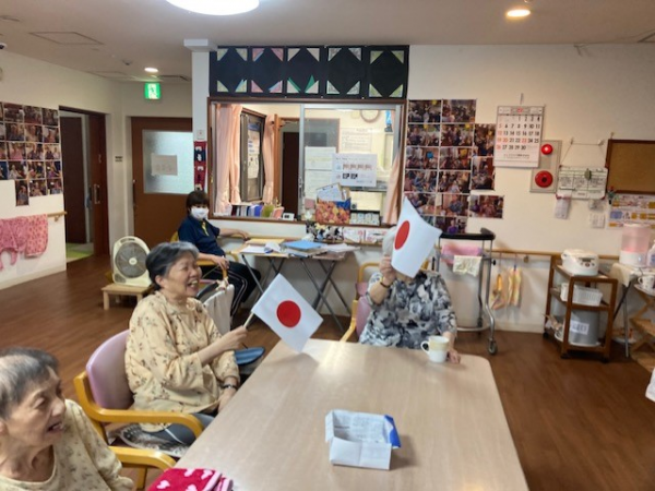 皆さんそれぞれが、日の丸の旗を振り一生懸命に応援!!!