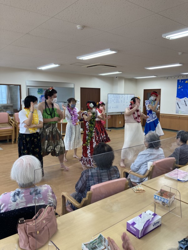 ビンゴ大会が終わった後は、等事業所きっての美女達?が躍るフラダンスを披露しました(#^^#)