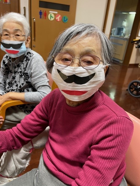 お髭とお口をマスクに飾り付け~