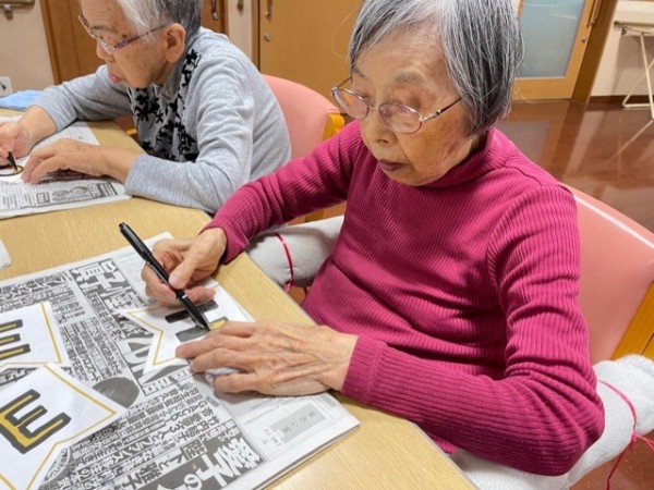まず初めに飾り付けの字への色塗りを行ないました。