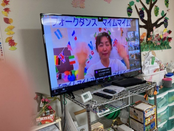 インストラクターの動きに合わせて、右へ左へ体を動かし、手をたたきダンスを楽しみました!(^^)!