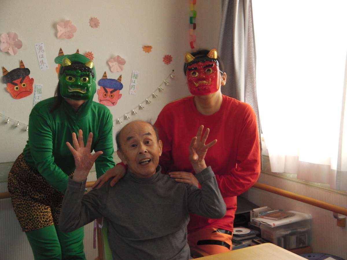 あの鬼のような顔の施設長が・・・お、お、鬼と事務所で戯れてました~(どういうこと?いいの?施設長~鬼は外デショ)