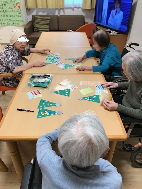 今日は、12月クリスマス会 に向けて「クリスマスツリー」を作りました。(^O^)