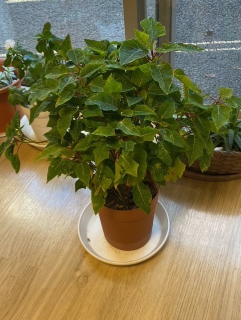 インターネットで調べたところ、ポインセチアは冬だと感じないと赤くならないそうです