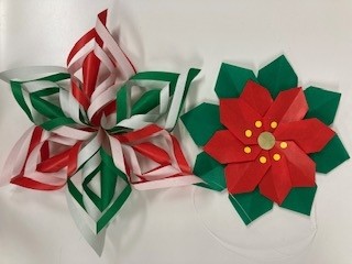 本日も恒例の折り紙【ポインセチアと雪の結晶】制作と口腔体操をで午後の時間を皆さんと過ごしてきました。
