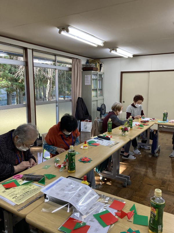 今回の参加者は11名。 「ポインセチア」 「雪の結晶」の制作を行いました。