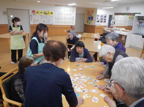 「犬も歩けば~」と職員が読み上げると「あった!」と手を伸ばすご利用者様。