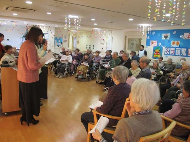 そして、本日14日はバレンタインデーコンサートをアルコバレイノの皆様により開催しました。知っている歌、どこかで聞いたことのある歌など、歌詞集を手にしっかりと口ずさまれていました。