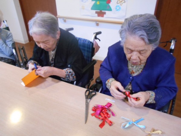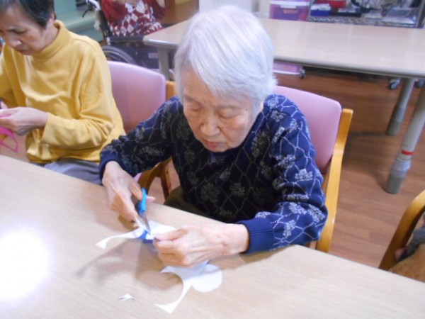 ハサミを上手に使い…「どんな形が出来上がるかしら?」おしゃべりしながら取り組んでいらっしゃいました!