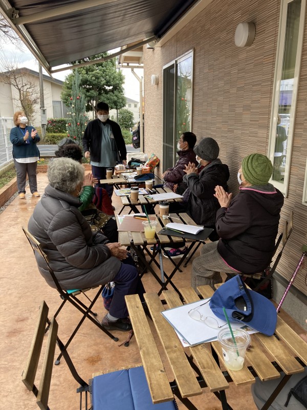 頭の体操(12月旬の食べ物連想ゲーム、指の体操)と機能訓練士の渡辺さんによる体操を行いました。