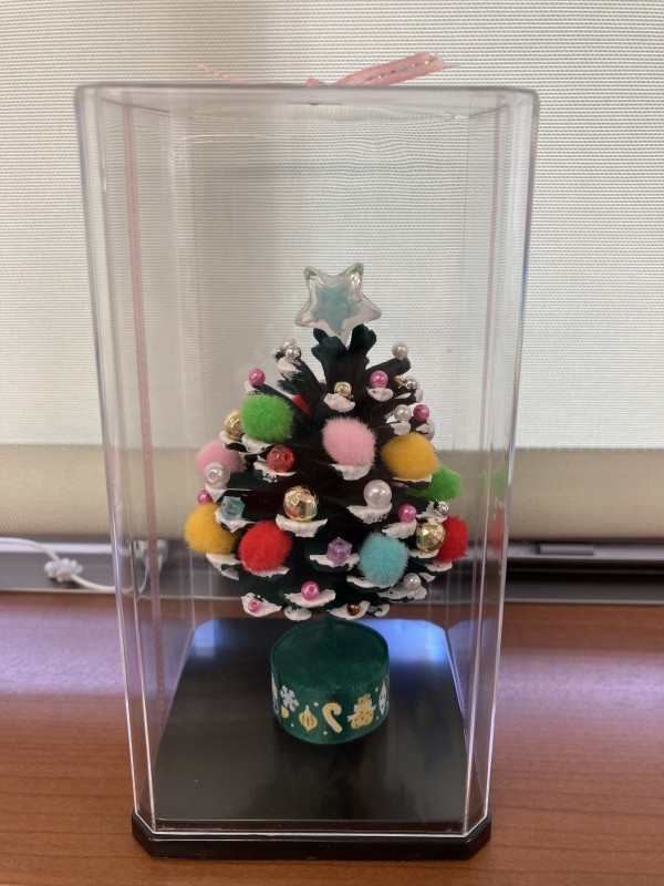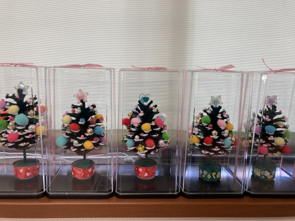 また、参加者のお一人が手作りの【クリスマスツリー】を作成して参加者の皆さんに持ってきてくれました。松ぼっくりに色を塗り、