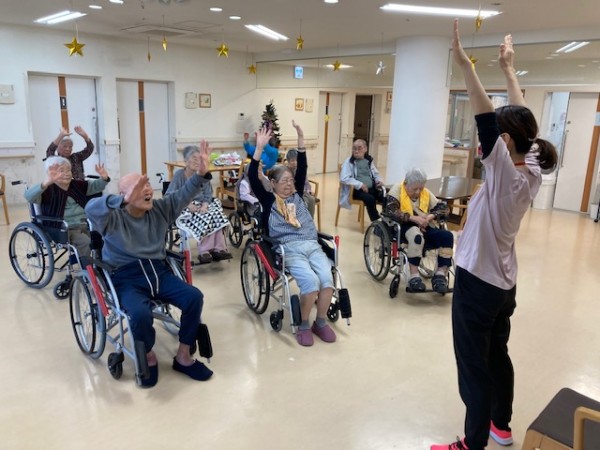 体操は毎日施設でも行っていますが、高橋先生が利用者様を