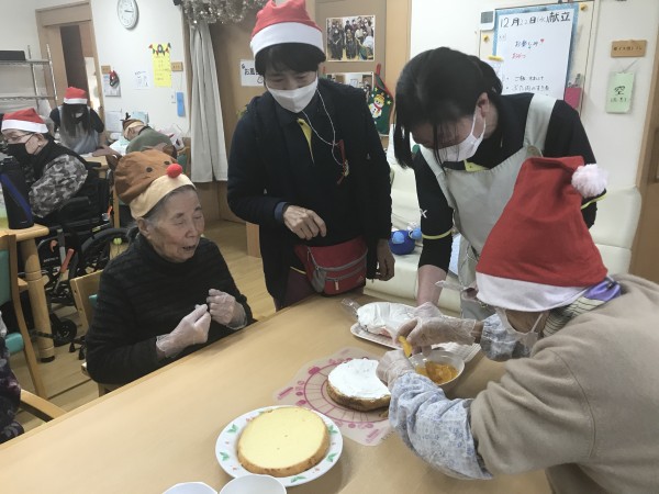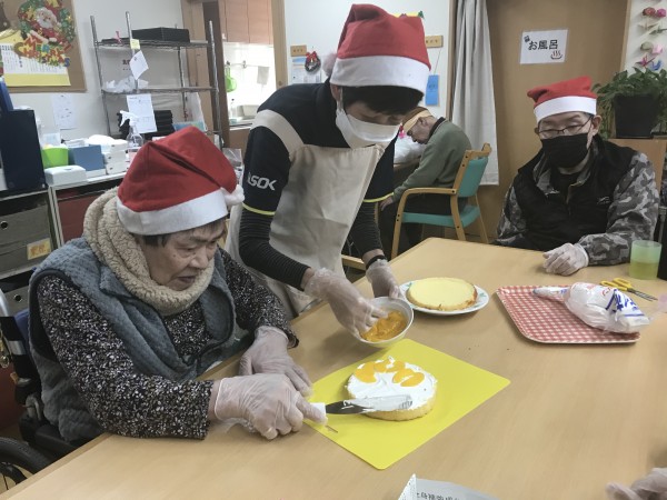 ゲームの後はご利用者様、職員でケーキ作り!!!