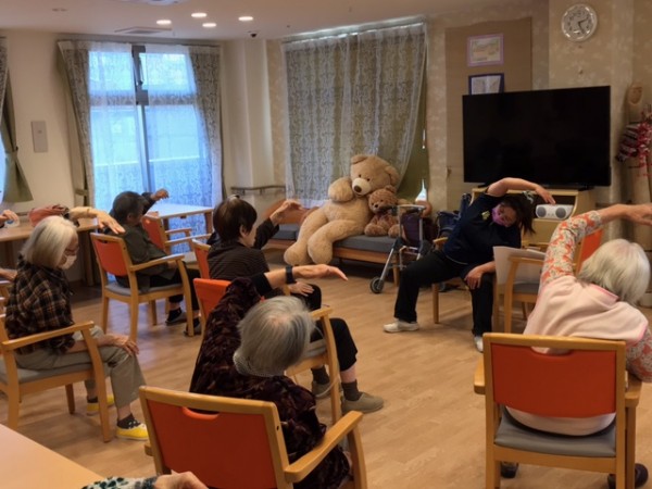当施設の眞鍋ケアリーダーがめでたく(笑)指導者になって初めてヨガを行いました。