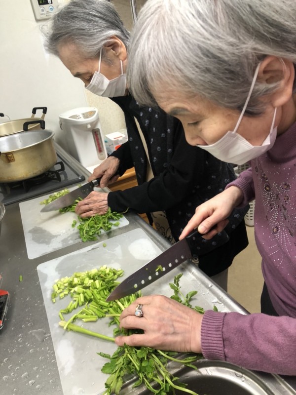 七草を切るところからお手伝いして頂き