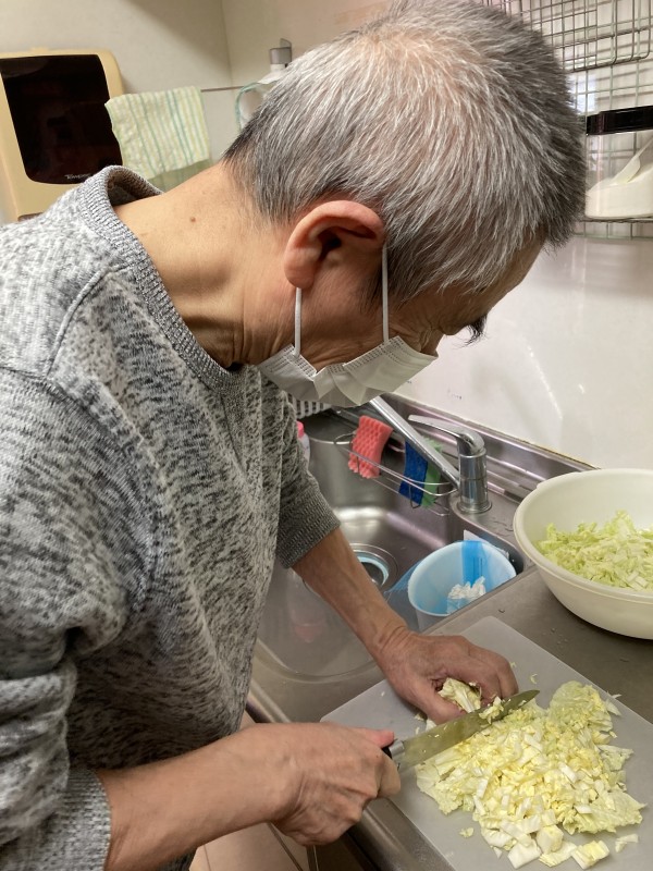 白菜や野菜を刻むのをお手伝いして頂きましたー!