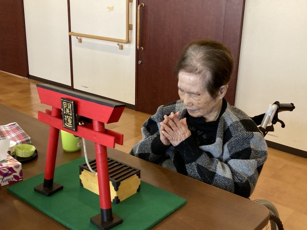 職員さんの手作り神社が登場し、皆様お参りでございます(*^人^*)
