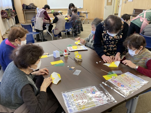 ラジオ体操をして、みんなで折り紙を作成し、わいわいと楽しめたようです。このご時世なので、飲食しながらの会にはできず