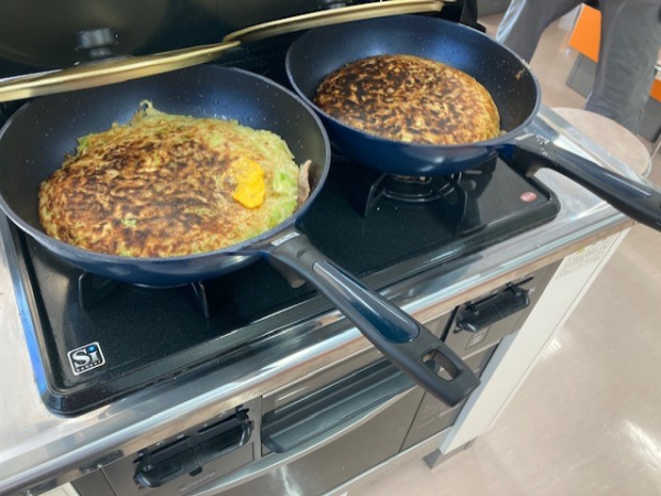 ひっくり返すときにはお鍋の蓋を使い、ひっくり返すごとに拍手喝采????