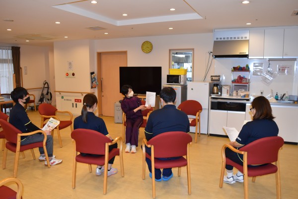 岡庭先生によるケアスタッフへの実技指導の時間です。