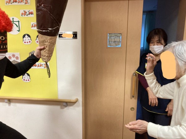ご利用者様の皆様に豆をまいていただき鬼を追い払ってもらいました