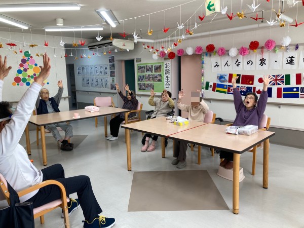 他の階の方と一緒に体操中です。