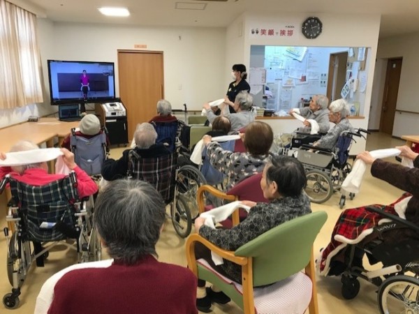 画面を見ながら、一所懸命みなさん体操してます(*^▽^*)