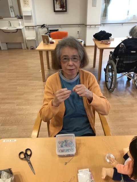 絵合わせを楽しんで頂いたり、ビースで数珠を作って頂いたり