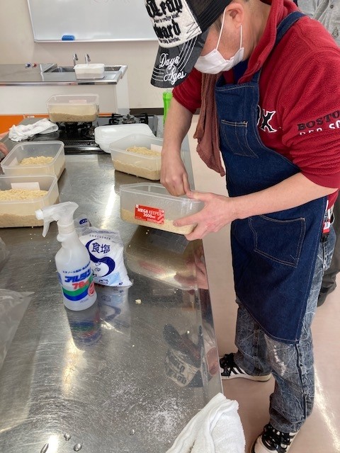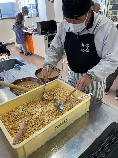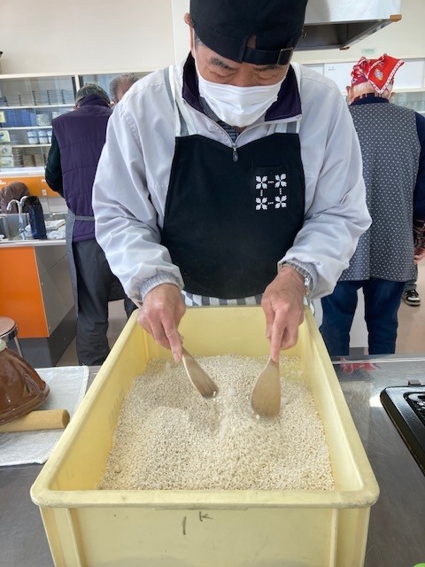 本日は、特別講師 米の穀万 大熊様にお越しいただき、味噌づくりを行いました