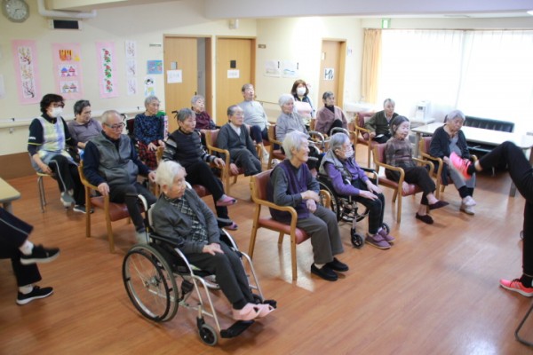 認知症対応型共同生活、グループホームみんなの家・蕨の介護ブログです。冬季オリンピックが終わりポカーンと穴が開いたような毎日を過ごされているような、この数日でした。2月24日(木曜日)今日は、予定していなかった訪問でノーアエクササイズの高橋指導員がきてくれました。今月2度目の訪問エクササイズ、ラッキー!!皆様、しっかり声を出し、笑いあり、脳と脚をうごかし楽しいひと時を過ごされました。皆様良く体が伸び、指導に従いながらエクササイズに参加されておりました。途中少し疲れたのかうとうとされた方もいたりして和気あいあい楽しかったです。