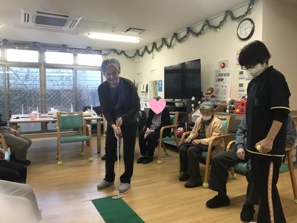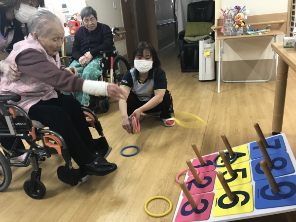 普段あまりレクリエーションに参加したがらないご利用者様も輪投げに楽しそうに取り組まれています!