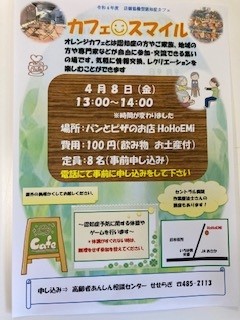 「きんもくせい」は毎月第4金曜日、「スマイルカフェ」は第2金曜日に実施します。
