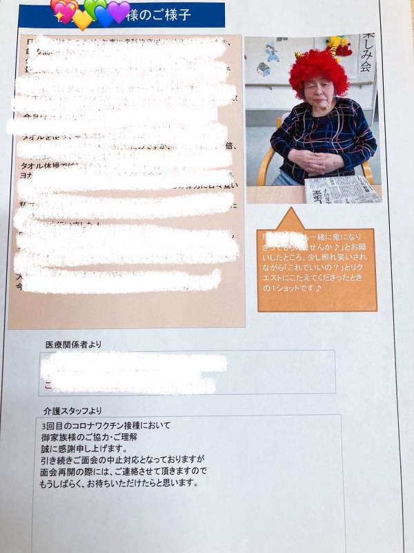 当ホーム3階、ご入所者様の2月一言通信が出来上がりましたので