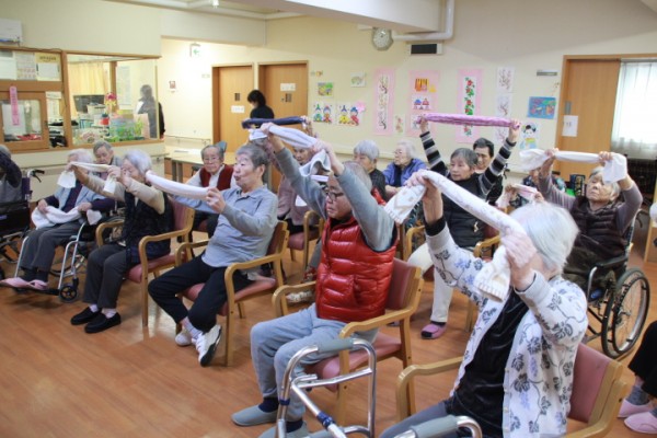 こんにちは!認知症対応型共同生活介護グループホームみんなの家・蕨です。本日も介護ブログをご覧いただきまして有難うございます。このところ、ブログに多くの方からイイねを頂くようになりスタッフ一同ありがたく思っております。本日は、リモートのAKトレーニングのタオル体操の予定でしたが、リモートを繋げたら「あれれ?先生が違う」急きょ、リモートのALSOKあんしんヨガの太田指導員とタオルを使ったヨガに変更されました。ご利用者の皆様は、画面を見ながらいつものテンポと違う感じで体を動かされておりました。皆様真剣に取り組まれておりました。体がとても柔らかいご利用者様がいて驚きです。