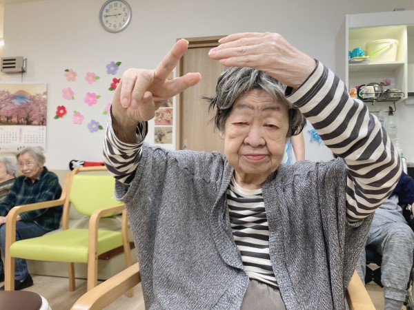 運動指導員さんから「元気になった人は大きな丸を見せてください!」と言われたみなさま。